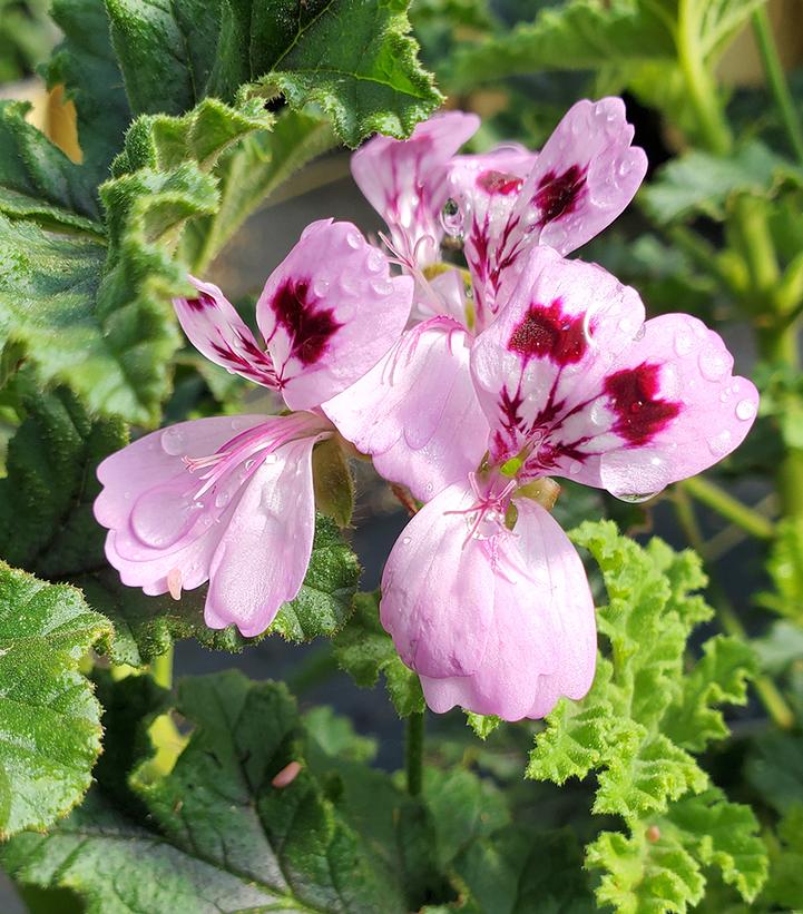 Small pink flowers have mauve markings while the foliage is dark green, oak-leaf, shaped and has a balsam scent. Plant this upright grower in pots, smaller gardens, or along a pathway. Will flourish through the summer heat. Great insect-repellent.